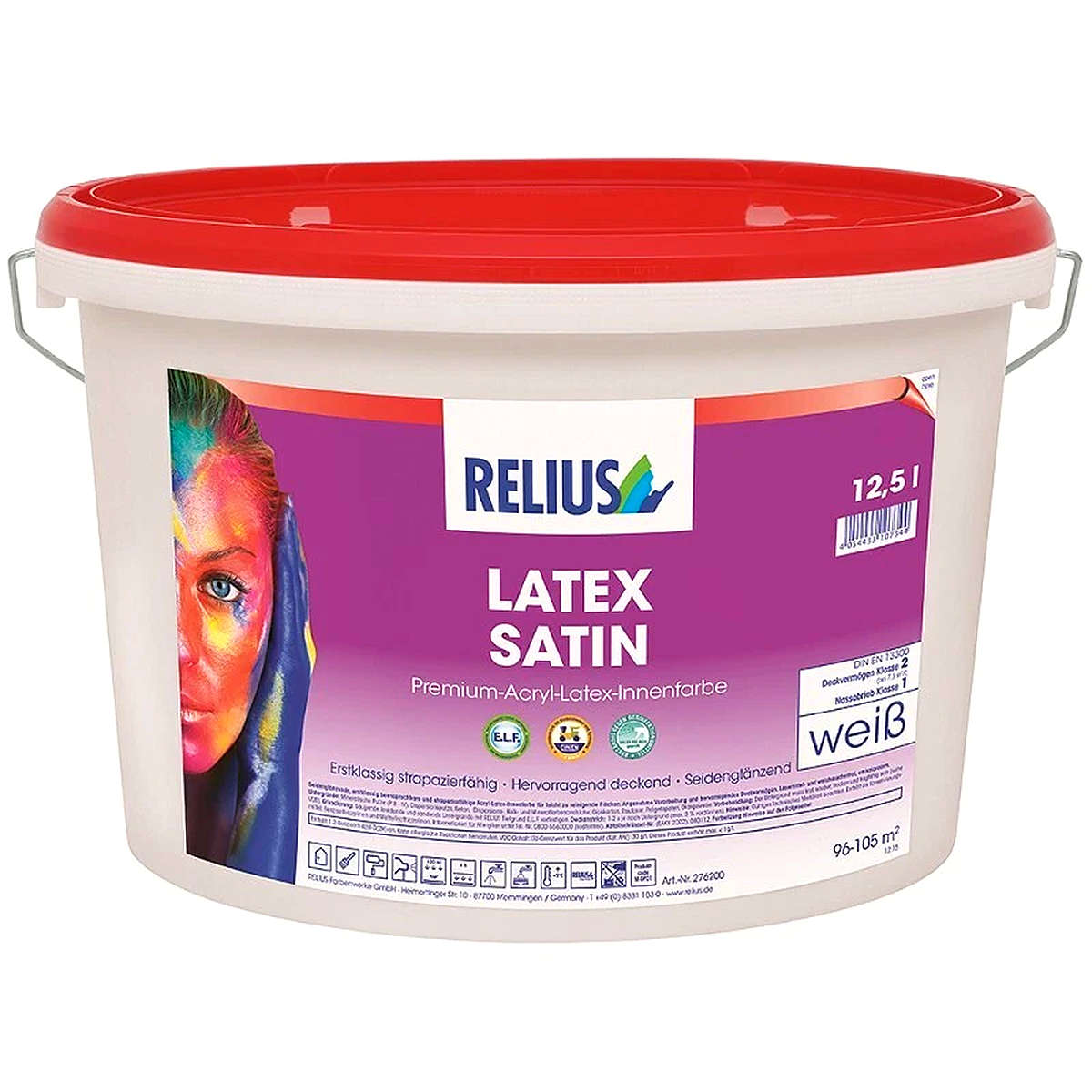 Seidenglänzende, höchst strapazierfähige und hoch deckende Acry-Latex-Innenfarbe. RELIUS LATEX SATIN ist besonders reinigungs- und hygienefreundlich, da höchst scheuerbeständig.