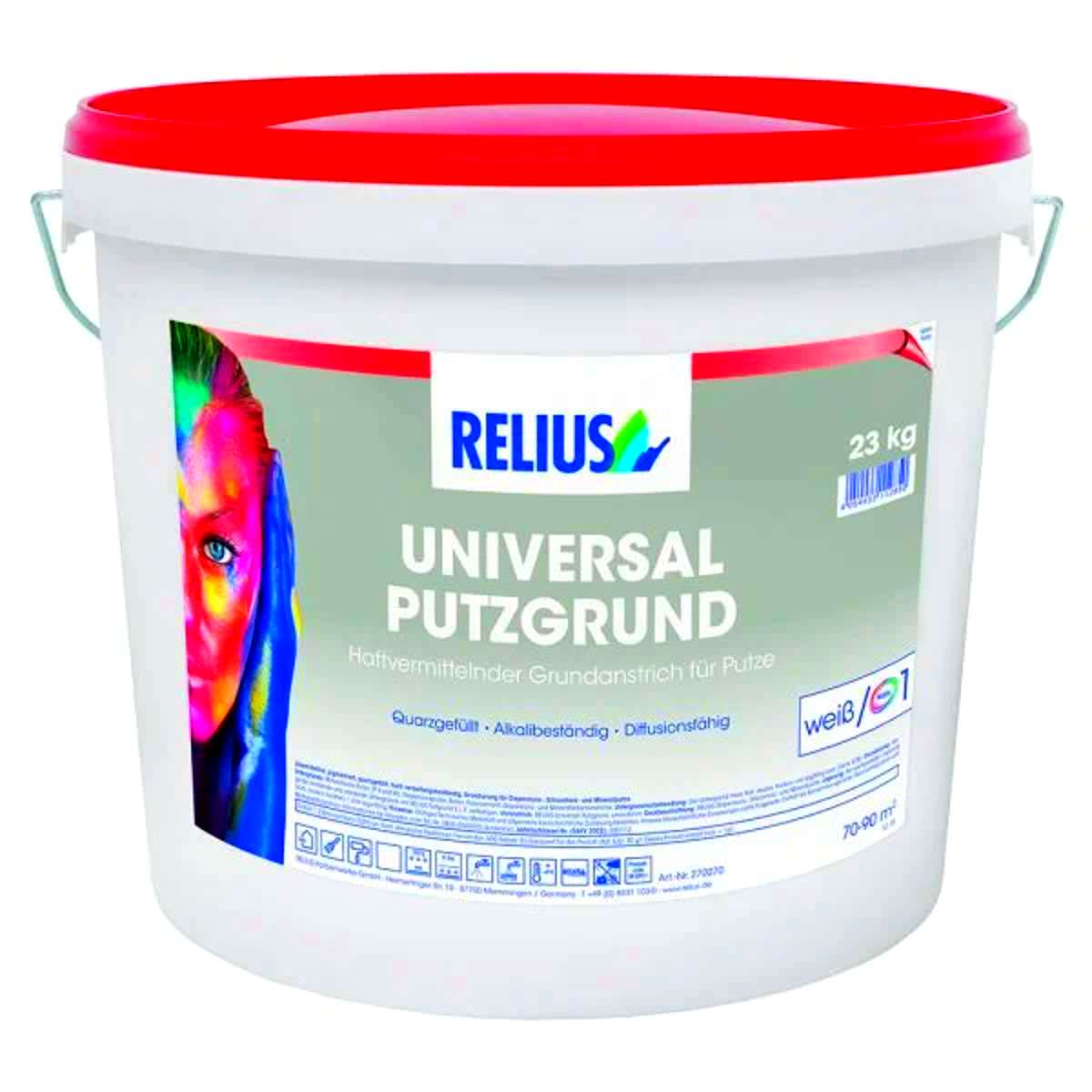 Der haftvermittelnde, lösemittelfreie, quarzgefüllte Grundanstrich ergibt griffige Oberflächen für nachfolgende Beschichtungen mit RELIUS Dispersions-, Siliconharz-, Silikat- und Mineralputzen. RELIUS UNIVERSAL PUTZGRUND ist leicht zu verarbeiten, alkalibeständig und wasserdampfdiffusionsoffen.
